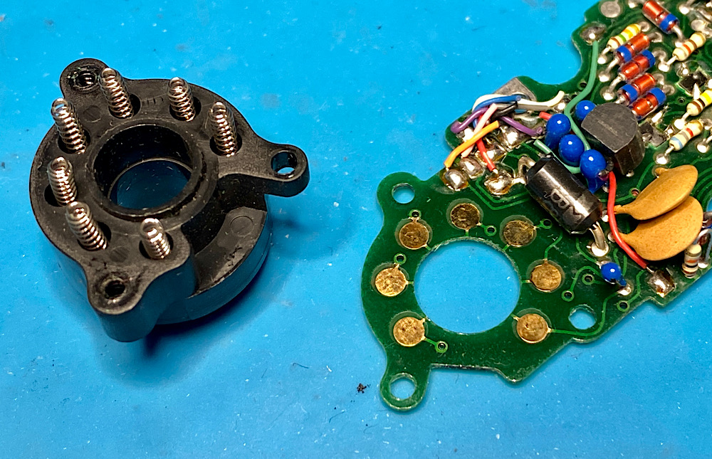 Die Federn im Ring verbinden die Stiftkontake elektrisch mit der Platine: