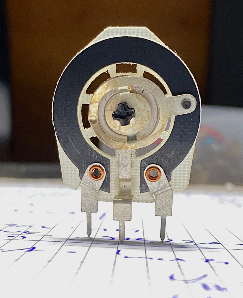 Das Poti hat den eindrucksvollen Durchmesser von 3 cm, eine schön breite, dadurch belastbare, Widerstandsbahn und ist dazu nicht gekapselt, also sehr anschaulich in seiner Funktion :)