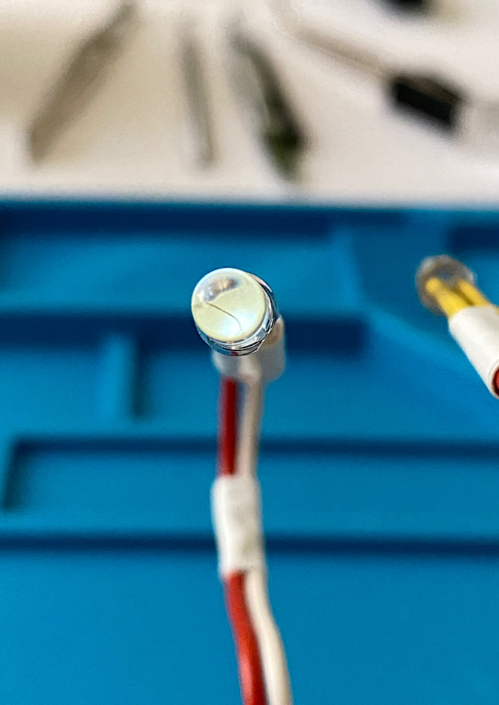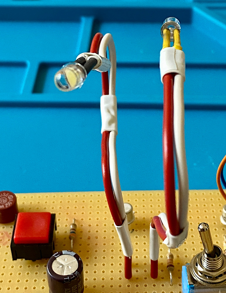 Die beiden superhellen LEDs leuchten jetzt weniger stark nach.