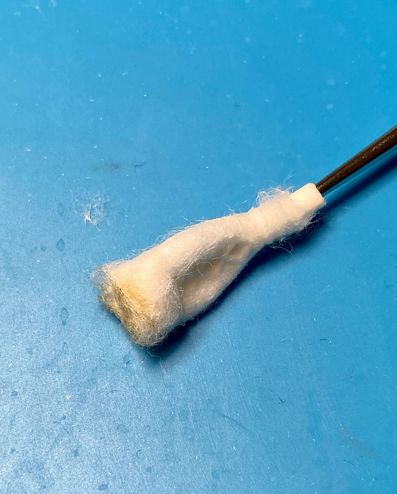 Mit einem Wattestäbchen lässt er sich fixieren: