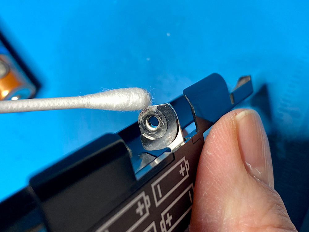 Auch die Kontakte im Batteriehalter werden auf Oxydation überprüft …