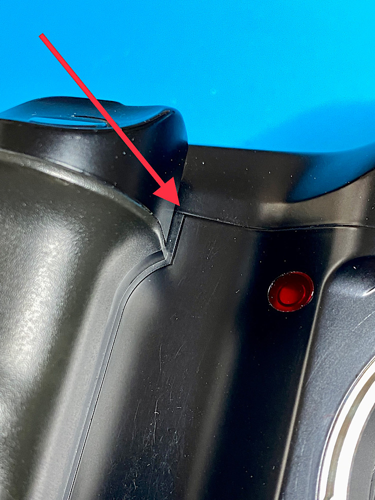 Beim Aufsetzen der vorderen Gehäuseabdeckung bemerke ich, dass die Abblendtaste eingerastet ist. Sie kommt nicht mehr zurück.