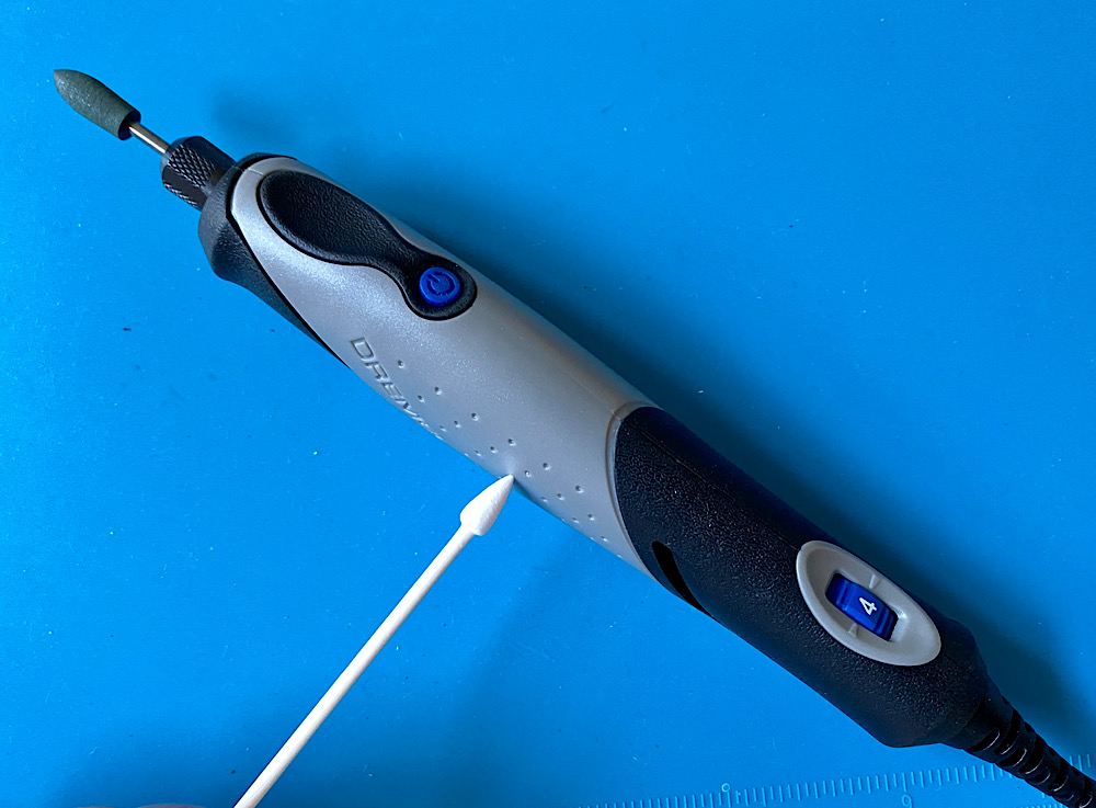 Die FFP2-Maske geht mit dem Dremel zusammen, ich muss den Abrieb ja nicht einatmen.