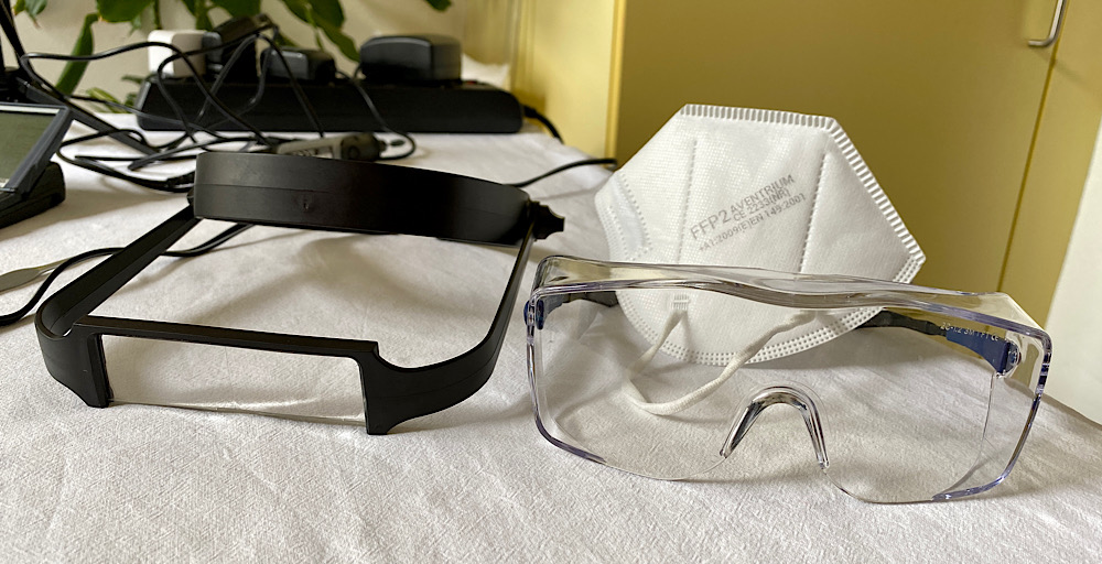 Und die Schutzbrille kommt auch beim Löten auf die Nase, zusammen mit der Lesebrille und der Lupenbrille.