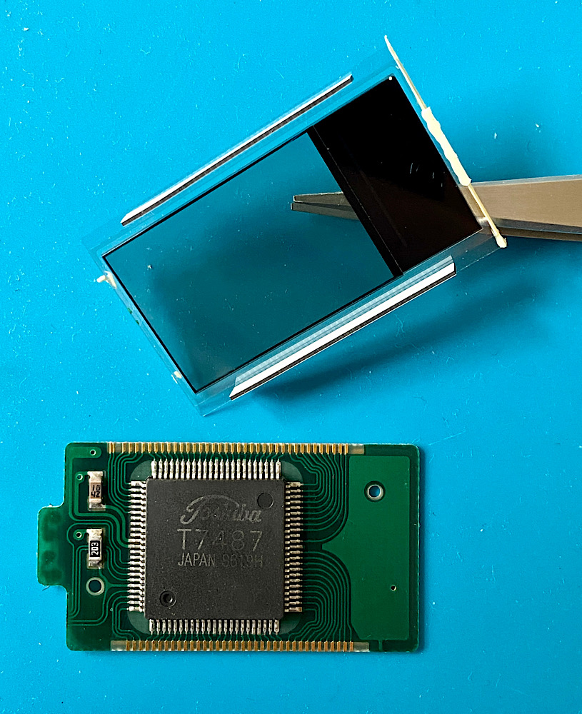 Danach ließ sich die flexible Platine abziehen, wobei die Kontakte soweit heil blieben: