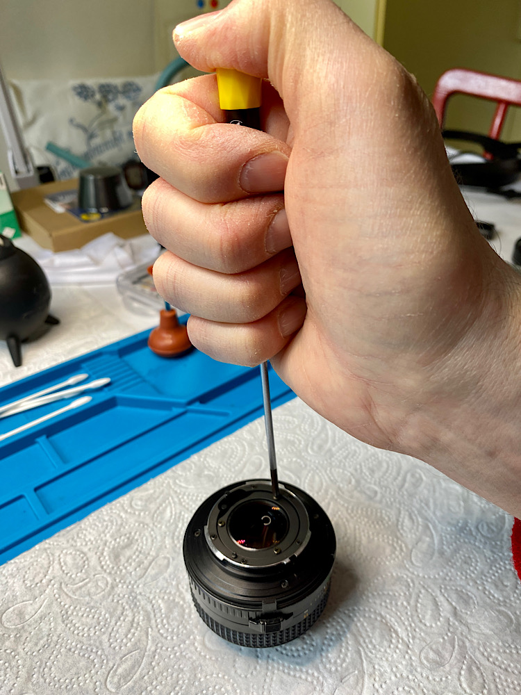 Gestern bin ich solchen Schrauben an meinem Nikkor 105/2.5 Ai begegnet, das ich auch an der Rückseite zwecks Reinigung der Linsen öffnen wollte.