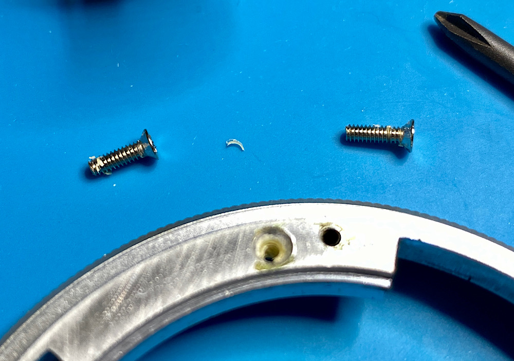 Auch weitere Schrauben im Objektiv, die ich auf diese Weise behandelte, ließen sich ohne den Schraubenkopf zu beschädigen lösen.