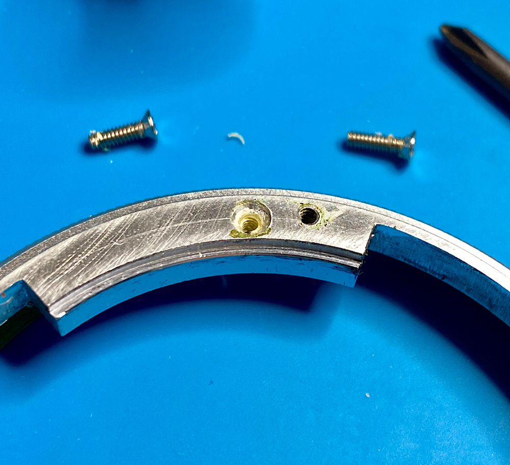 Zu finden sind solche widerspenstige Schrauben ua. in den Bajonetten alter Nikkore, wo sie zusätzlich mit Klebstoff gesichert sind: