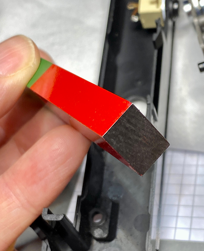 - Die Abdeckung des Auslösers erhielt neue Klebepunkte. Die Einheit kann jetzt mit der Platine darunter nach dem Lösen von zwei Schrauben herausgehoben werden, wie es ursprünglich vorgesehen war.