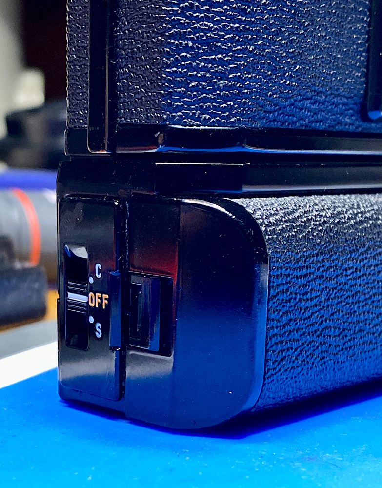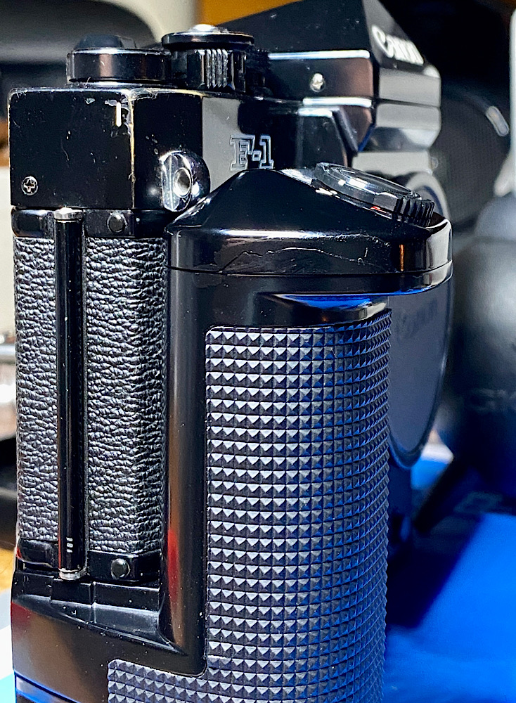 Zur Canon F-1 - die „alte“ F-1 - gibt es den Power Winder F mit Einzel- und Serienschaltung.