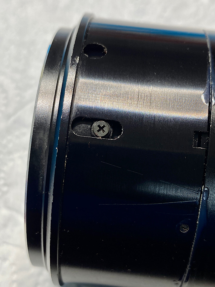 Die Kopplung des Fokusringes mit dem vorderen Helicoid zur Scharfstellung erfolgt über zwei Gleitlager und drei Schrauben.