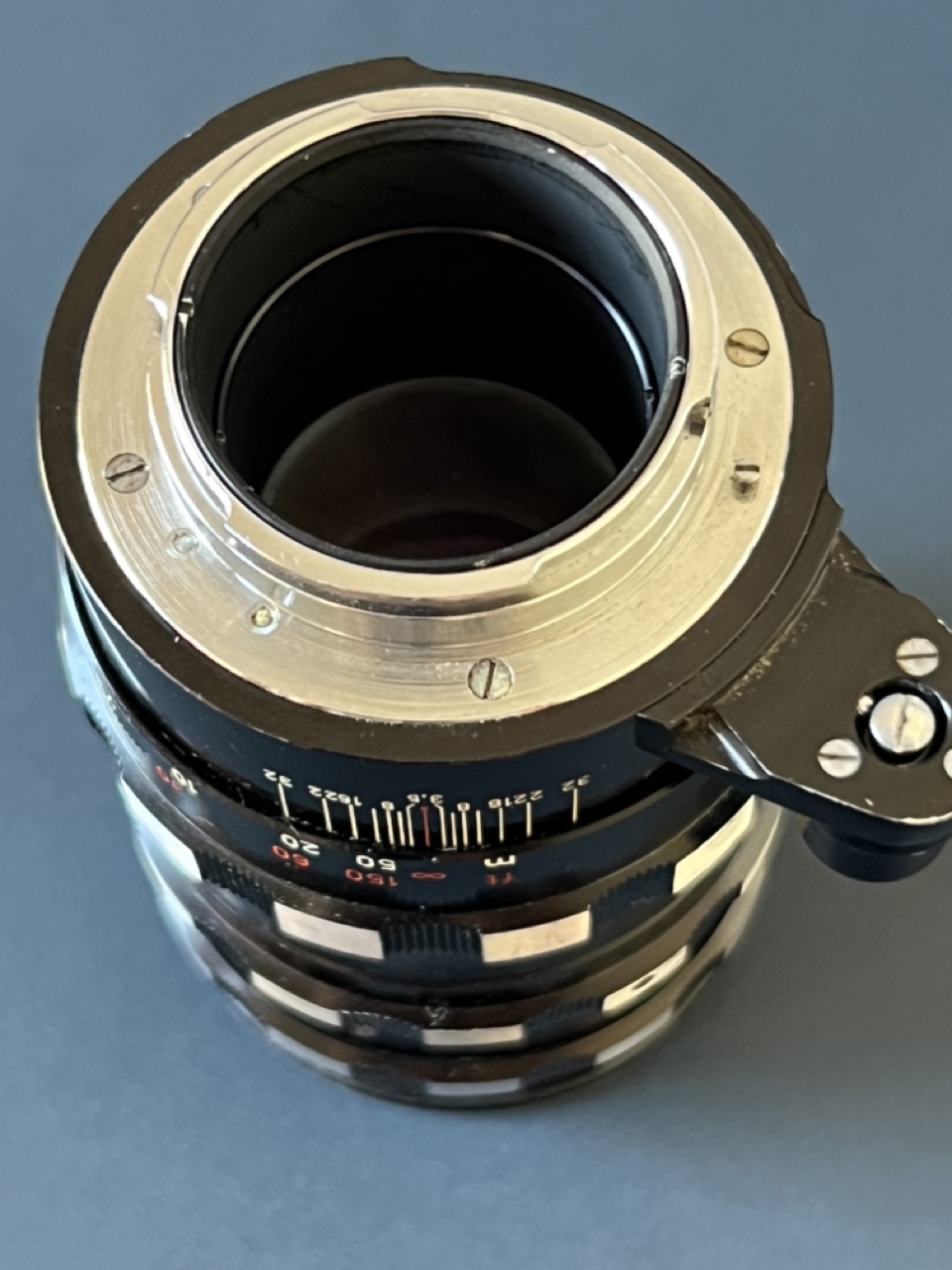 Kürzlich konnte ich bei einem A.Schacht Travenar 3,5/135 mit Exa/Exakta-Anschluss für 20 Franken, in tollem äusseren Zustand, mit Orig.-Karton (etwas verschmuddelt) sowie Orig.-Front- und Rückdeckel nicht widerstehen. Was ich bei ambulanter Betrachtung als Staub auf der hintersten Linse erhoffte, stellte sich nach näherer Betrachtung dann aber leider doch als handfester Glaspilz, mutmasslich auf der nach innen weisenden Seite der hintersten Linse heraus.