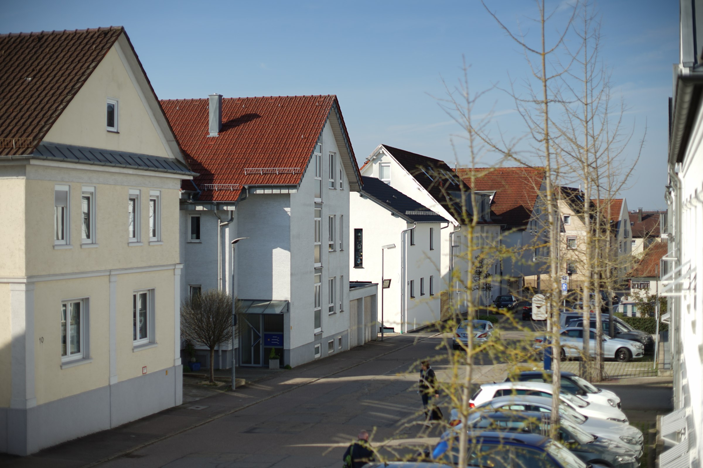 Ich beginne mal mit der weiten Distanz. Heute Morgen schien die Sonne, so dass sich harte Kontraste ergeben haben. Die andere Straßenseite hatte deutlich weniger Kontraste und war entsprechend uninteressant.