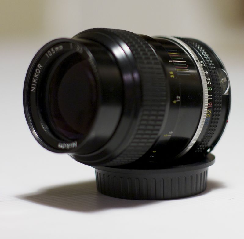 Hatte mit dem Nikkor 105mm 2.5 schon eine weile geliebaeugelt und auch schon beinahe mal zugeschlagen aber dann doch wieder einen Rueckzieher gemacht - aus Zweifel ob ich Verwendung fuer eine Linse zwischen meinem Nikkor 85/2 und meinem Takumar 135/3.5 haben werde.