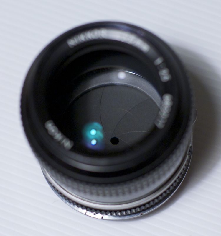 Nun ja, jetzt gab es eins in der Bucht zu einem wirklich guten Preis und bis auf eine winzige Beschaedigung am Filterring ist eigentlich alles wie neu. Nichtmal Staub kann ich darin entdecken was fuer so ein altes Objektiv ja eher ungewoehnlich ist. Dies ist eine "K"-Version, vor AI (deswegen vermutlich etwas billiger, da an vielen Nikons nicht zu verwenden) aber schon mit Mehrfachverguetung und der neueren optischen Formel.