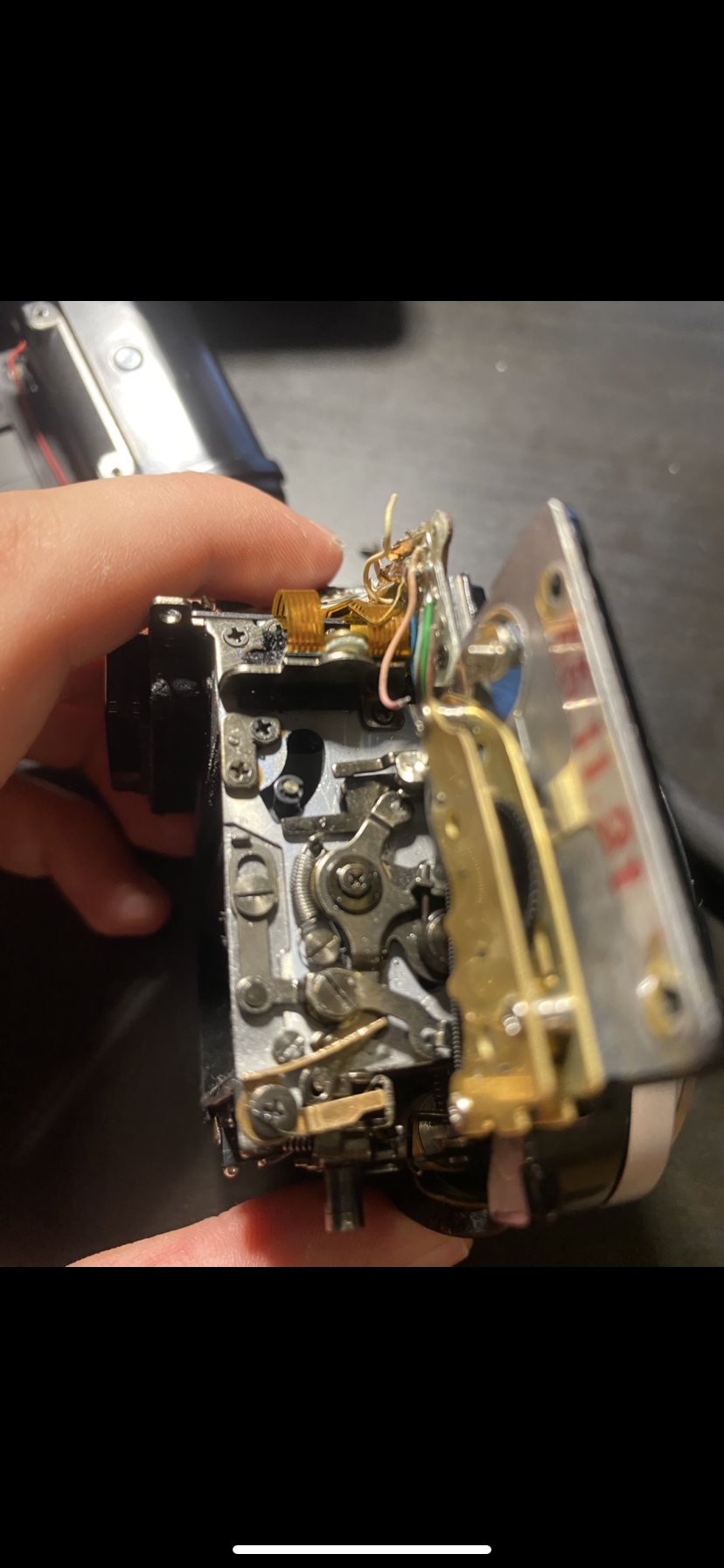 Ohne diese Feder scheint der Mechanismus nicht richtig zurückzustellen. Also der Spiegel geht hoch wenn ich aufziehe und auslöse aber leider nicht mehr runter.