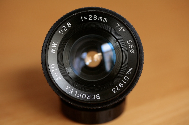 Das AUTO BEROFLEX f=28 mm 1:2.8 ist eine sehr günstige Weitwinkel-Festbrennweite, gefertigt in Japan.