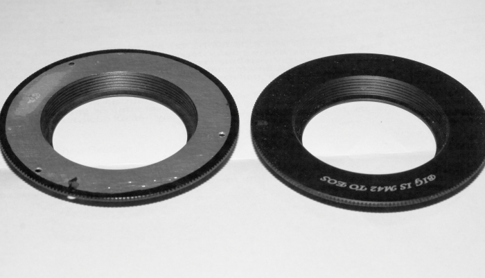Also musste bei diesem Objektiv das Unendlich zusätzlich über das Schleifen des für den EF Anschluss genutzen M42 auf EOS EF - Adapters erfolgen..