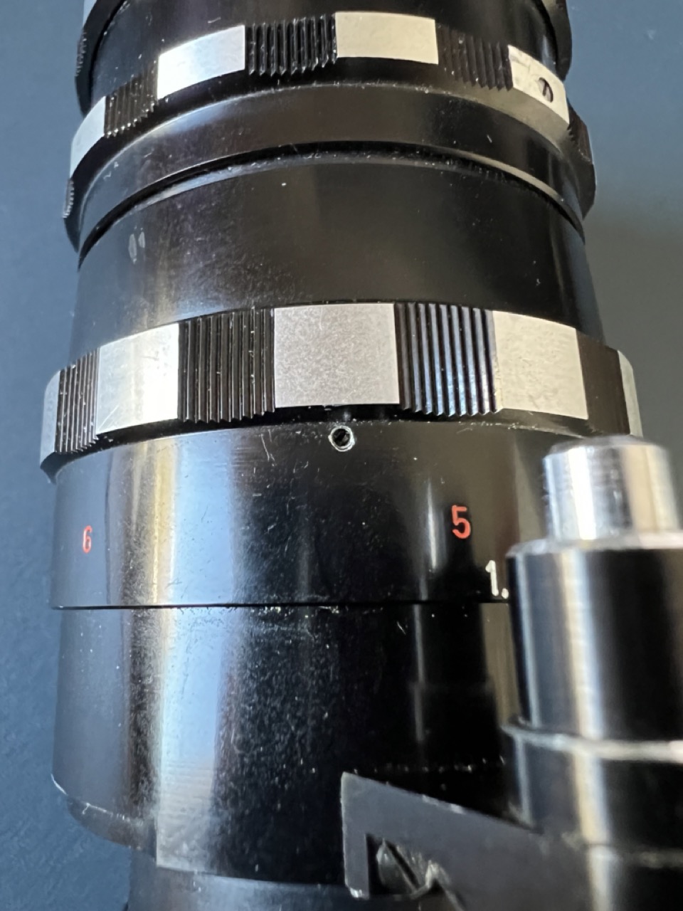 Ich habe also die 2 Gewindestifte und das Schräubchen gelöst, aber der Ring löste sich nicht von der Schnecke. Irgendwann löste er sich, aber da war ich falschen Ende der Skala und die Fehleinstellung wurde noch viel schlimmer. Schließlich habe ich auch das wieder eingefangen gekriegt und jetzt scheine ich den Entfernungsring einigermaßen korrekt fixiert zu haben. Das Schräubchen, das ich zunächst nicht herausbekam (drehte leer beim Lösen) kriege ich nun nicht mehr gehalten, es dreht leer beim Reindrehen. Naja, die beiden Gewindestifte scheinen den Entfernungsring auch auf der Schnecke zu halten.